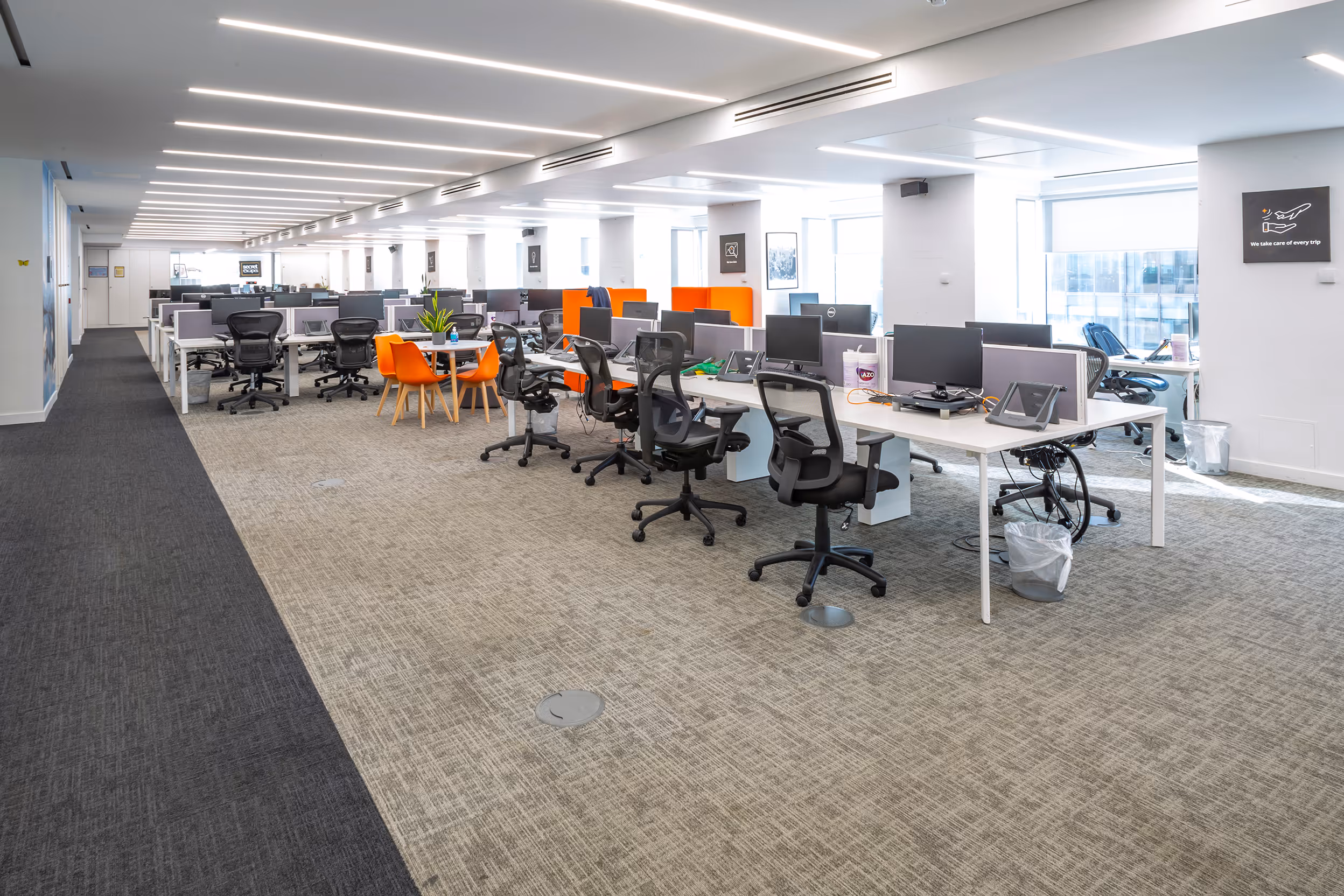 The part 4th floor west is fully fitted and furnished benefitting from a large kitchen and breakout area, multiple fitted meeting rooms and large open plan working area with furniture in situ:130-150+ desks8x meeting rooms / offices2x kitchens / tea points1x large breakout spaceAvailable on both a Conventional and Fully Managed basis for a 24 month term