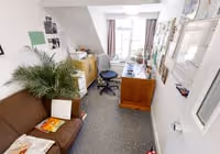 Arquen House Business Center, located in St Albans, Hertfordshire, offers office accommodation spread across three floors. The building, formerly part of the adjacent Abbey National Boys School, has been converted into 13 individual office suites available on flexible terms. The ground floor features an entrance hall and four office suites, with a small meeting table for visitors and male toilet facilities. The first floor comprises five office suites, a kitchen area, and ladies toilets. The second floor consists of two separate areas, each accessible via its own staircase. Vacant suites are immediately available, and the license fees include a range of services such as reception, fire safety, maintenance, kitchen facilities, security alarm, and more, making it a convenient and well-equipped choice for businesses.