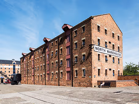 The Gloucester Docks North Warehouse business centre is in a unique city centre location within an iconic and historical building that boasts wonderful waterside views. It occupies the ground, first and second floors of a building first constructed in 1827, but which was initially converted by the city council for office use 20 years ago, and was fully modernised and provisioned with the latest infrastructure in 2013 by Regus. The business centre benefits from being at the very heart of the regenerated and thriving Gloucester Docks area, which is a favourite for visitors and locals with a mix of offices, waterside museums, bars, cafes, restaurants and shops - all nestling alongside maritime heritage. Major financial services companies are based in the city, as is the Gloucester Quays retail development. Hi-tech businesses in the region including those in the aerospace industry, with components manufacture making a contribution to the local economy. The business centre is less than three miles from the M5 motorway, providing a link with Bristol and Birmingham. The citys railway station provides services to London, Reading, Cardiff and Nottingham.