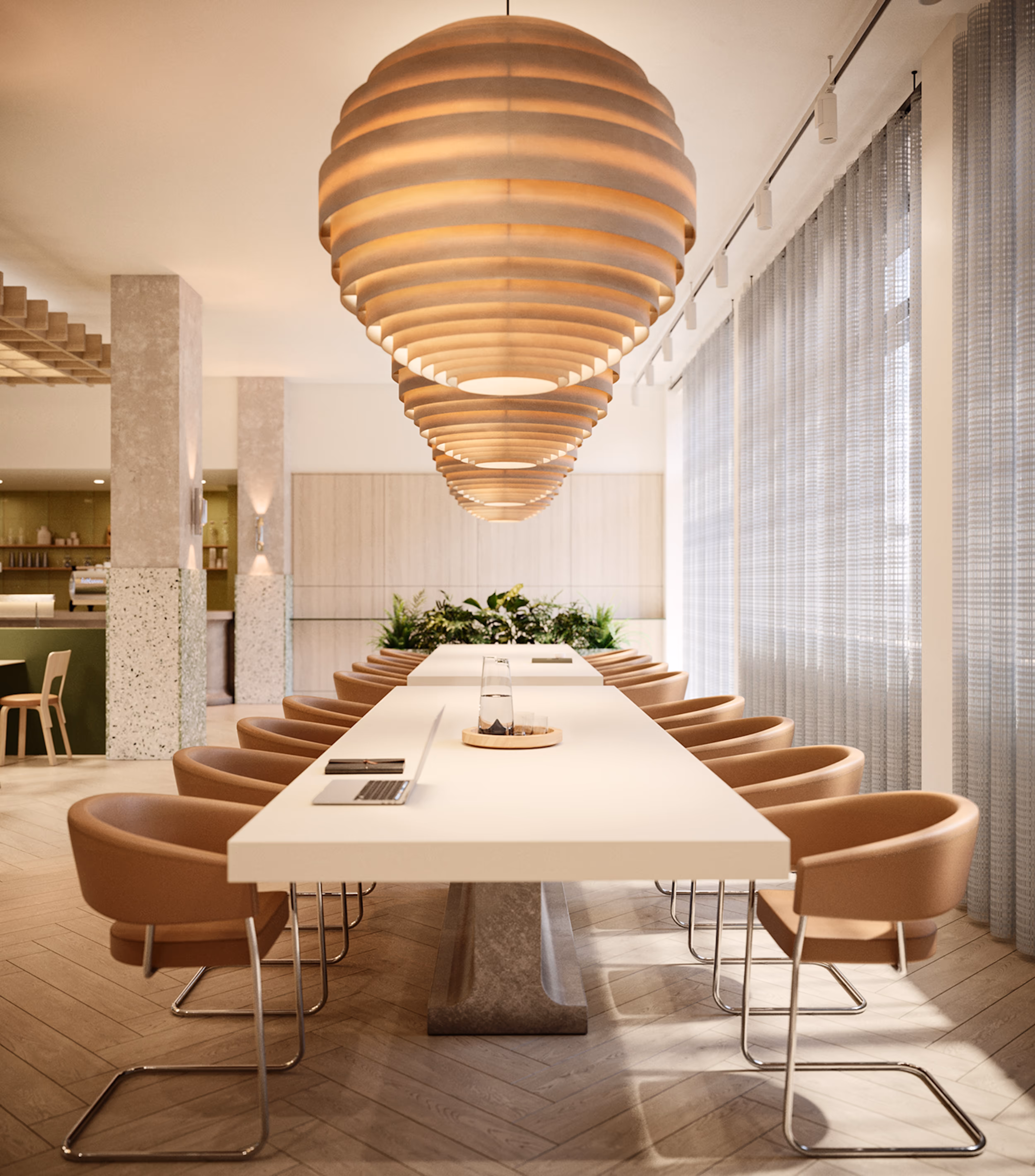 A hideaway from the hustle and bustle, Henry Wood House features a beautiful rooftop terrace with spectacular views its the perfect place to consider your next big idea. Take a moment to pause in our outdoor courtyard, attached to our on-site café, where you can take a moment to pause with a hot drink or healthy snack. Henry Wood House is ideally situated in the heart of central London and counts Broadcasting House, the Grade II listed home of the BBC, as its neighbour. If youre in need of inspiration, youll find the famous shopping areas of Oxford Street and Regent Street, along with the vibrant restaurants and cafés of Soho, only minutes way. Staying true to our sustainably focused design ethos, weve breathed new life into the existing structure of Henry Wood House and kept as much of the original configuration as possible, including restoring the terrazzo floor in the lift lobbies. We worked with Danish company, Kvadrat, to upcycle all the existing loose textiles into high quality tabletops in the new café. Weve purposefully reconfigured spaces to ensure natural light is available to you throughout the building to improve productivity and focus. The on-site fitness studio gives you space to stretch the day away, plus with showers, changing rooms and bike storage available, were here to make sure youre sorted whether you choose to cycle in or go for a lunchtime run.