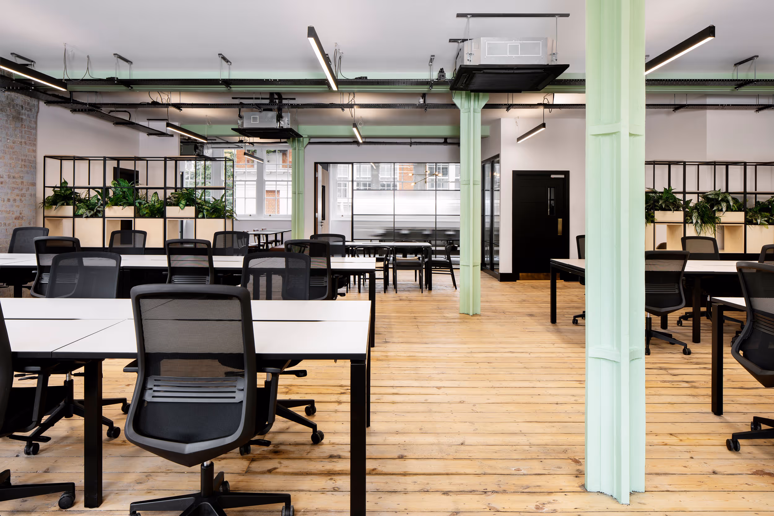 Discover the exceptional office space at 15 Ironmonger Row. The property has been comprehensively refurbished, retaining its beautiful original cast iron exposed beams, sandblasted brickwork, original wood flooring, and generous floor to ceiling heights. Spanning 2104 square feet, this contemporary workspace features an open plan layout with 48 desks, providing an ample 43 square feet per person. Additionally, youll find a furnished 10-person boardroom for your important meetings, breakout areas for collaboration, private phone booths for confidential conversations, and a private open plan kitchen for convenience. As you step into the welcome area/reception space, youll feel the professional ambiance that sets the tone for your business. Enjoy the comfort of demised WCs and a communal shower, ensuring convenience and well-being for your team. Stay connected with 100mb of dedicated fibre optic WiFi and create a comfortable working environment with the provided air conditioning. Experience the perfect balance of productivity and comfort in this prime office location. Book a tour today and elevate your business at 15 Ironmonger Row