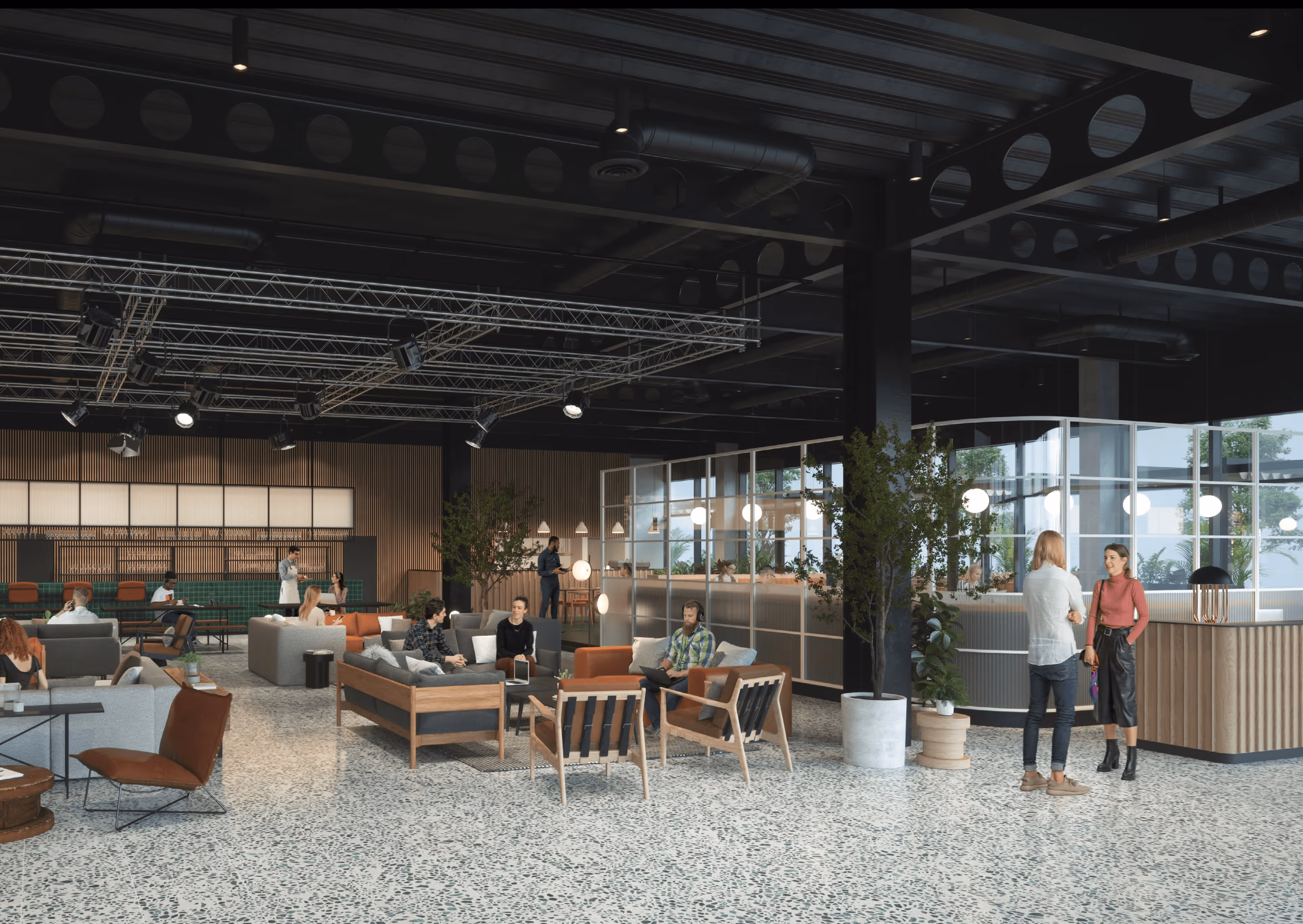 Department Leeds Dock will be a celebration of the arts, media and digital industries. A former casino restored to a creative work, wellness and social destination. Already home to Sky Digital and Channel 4, Leeds Dock is a creative waterside community with independent eateries, wellness facilities and cultural events. The impressive workspace offers hot desks, resident desks, private studios, premium office suites, dedicated office floors, breakout areas, creative production studios, event spaces and meeting room facilities; all designed by leading property designers. The interiors will incorporate contemporary styling with glazed partitions, natural materials and terrazzo finishes. Departments studios and suites provide businesses with a private workspace, whilst still benefitting from all the perks that come with being part of the community. The workspace has space for businesses with up to 70 team members. Across all membership tiers, business essentials come as standard including a stylish kitchen, tea & coffee, 24/7 access, on-site tech support, soundproofed phone booths, WiFi and a community management team. The ground floor of Department Leeds Dock embodies the social element of the brand with Dept Coffee shop and Department Store, the signature bar, lounge and lifestyle offering with all day dining. Members also receive preferential access to Condition gym next door, bike parking and showers on site.
