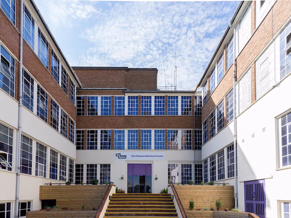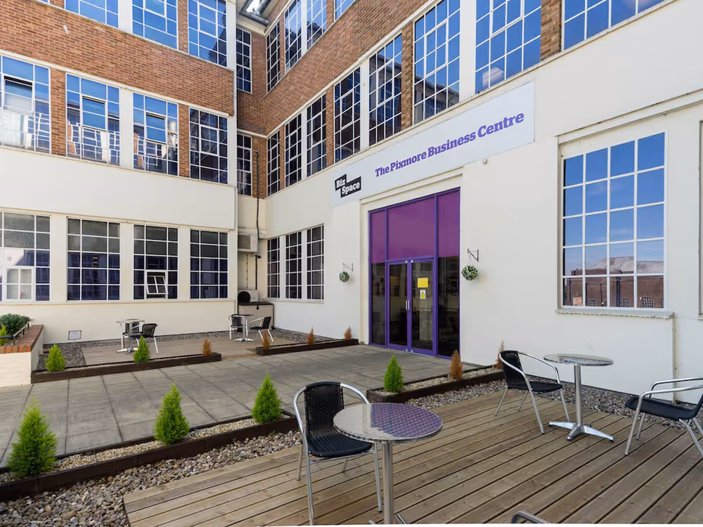 The Pixmore Centre is based in the historic town of Letchworth Garden City, north Hertfordshire and offers a mixture of managed and service office space, workshops, mailboxes and coworking space. It also provides three meeting rooms that can be hired on an hourly basis. Previously a glass factory, the centre still contains some of its original character, with high ceilings and large windows that let in plenty of natural light. The centre benefits from 24-hour access, free car parking, a dedicated loading bay and ramp, an on-site cafe and a door-to-door daily sandwich round, selling pastries, snacks and sandwiches. Our friendly reception staff also provide telephone answering, postal services and pay-as-you-go secretarial support. With a total of 57 business units spread over four floors, we are home to both small companies and larger corporate businesses.