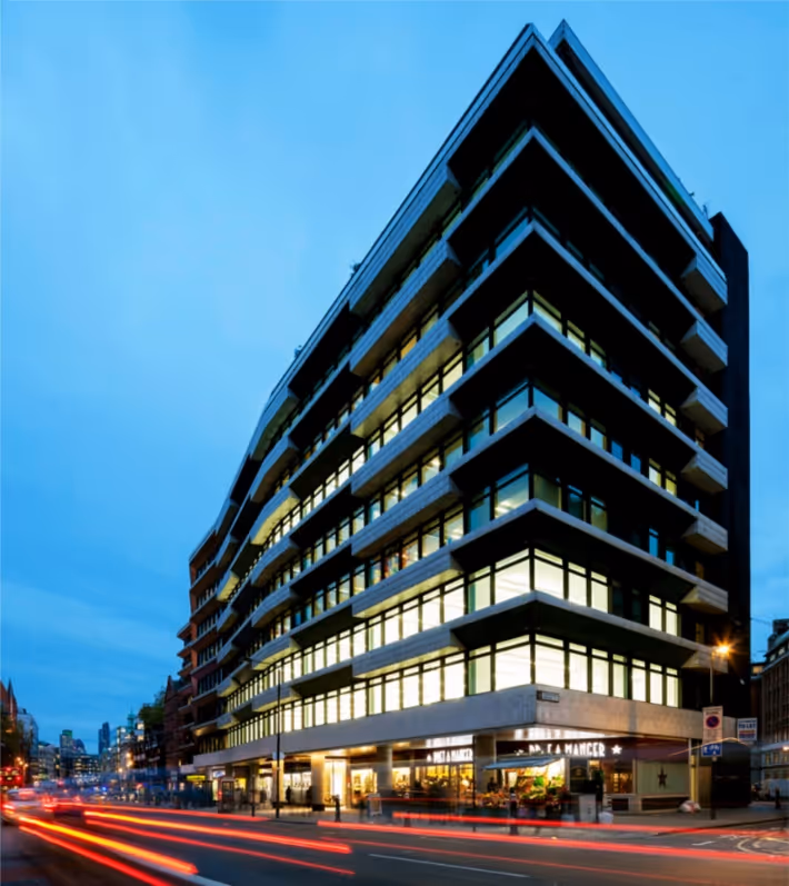 A modernist icon adjacent to Chancery Lane tube in the heart of Londons thriving Midtown. Unique to MidtownCycle centreiPad baristasWorkplaceFully-furnished, climate-controlled suitesSpaces designed & tailored to your needsSecure electronic access 24/7Fully-equipped kitchensComplimentary coffee, on site baristaShowers, fluffy towels & productsLuxury client loungesServiceFriendly reception teamConciergePersonalised telephone answering in-houseDaily suite cleaning teamAdmin assistance, small or large scaleTechDedicated dual-fibre with 24/7 uptimeCategory 6 cablingCloud IP Telephony offering conferencing and collaboration, flexible working, Microsoft Teams integration and voice recordingCrestron AV systemsComplimentary Wi-Fi