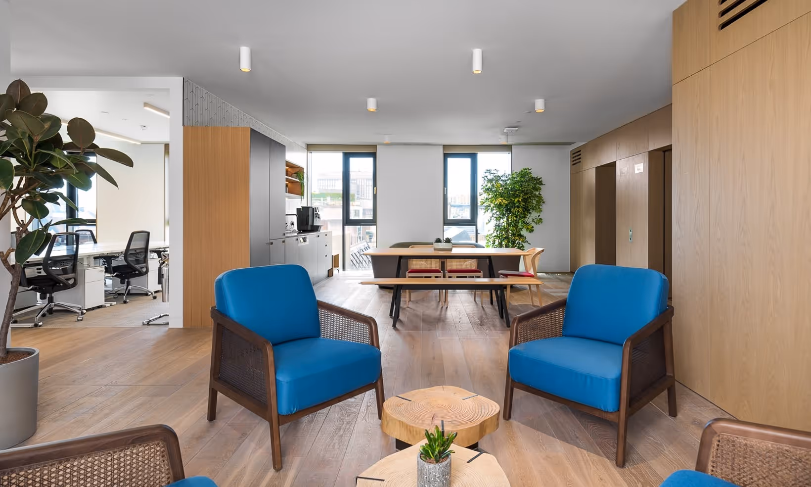 A newly designed sustainable workspace, just minutes from Bond Street. Wherever you are in the Parcels Building, youre surrounded by ethically sourced, sustainable furniture and finishes. The workspace is certified with BREEAM Excellent too. Biophilic design plays a big part throughout the Parcels Building, with an abundance of greenery and plenty of natural light pouring through the stunning full-height windows. And when you want to step outside, the terrace offers a unique elevated view of Oxford Street and Selfridges across the road. The Parcels Building presents a unique proposition modern, flexible office space, with an abundance of greenery and natural light, right above Britains busiest shopping street. Enjoy one-of-a-kind views as the sun sets over Londons West End, watch the crowds come and go from the neighbouring Selfridges & Co. , and get to work in a space tailored to suit your every need. Deliver inspiring, memorable experiences thanks to one of the buildings most impressive features a light-flooded, double-height event space. Connecting the fourth and fifth floors, its kitted out with amphitheater-style seating and a statement staircase.
