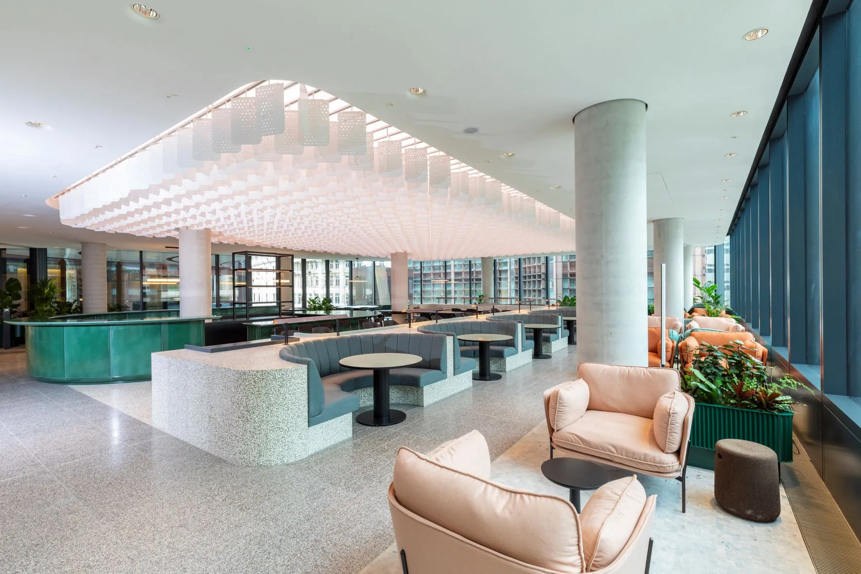 100 Liverpool Street is more than a building. With three levels of premium shops, bars and restaurants, a rooftop restaurant with dramatic views and its own covered entrance to the Elizabeth Line, its a destination in its own right. Designed by Hopkins Architects, with interiors by Universal Design Studio and Gensler.