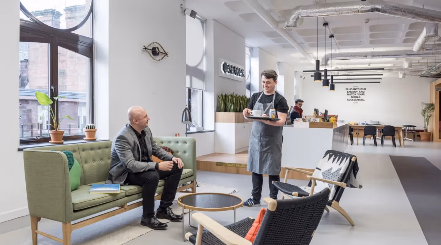 Location is only part of the success, but a good one does help. Spaces West George Street is located in the very heart of Glasgow, offering the grandeur of the big city and all the benefits that come with it. Just a few minutes stroll takes you to Queen Street Railway station, allowing you to travel and commute effortlessly. If youre in need for a breath of fresh air, simply visit one of Glasgows many lush green areas or public parks. This central location offers everything your versatile life requires. A flexible workspace is only as good as the service it offers. We aim to provide the best service possible. From hiring a workspace suited to your personal needs, designer meeting rooms and a cafe area with barista service, everything is possible. Our smiling receptionists are ready to receive your mail and answer your calls for you. All you need to do is plug into our energy and watch your world accelerate.